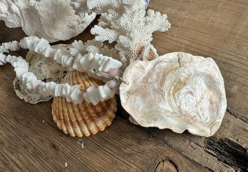 ✨ Ett djärvt, handgjort smycke där Boho Chic möter Mermaidcore — naturligt, elegant och oförglömligt.